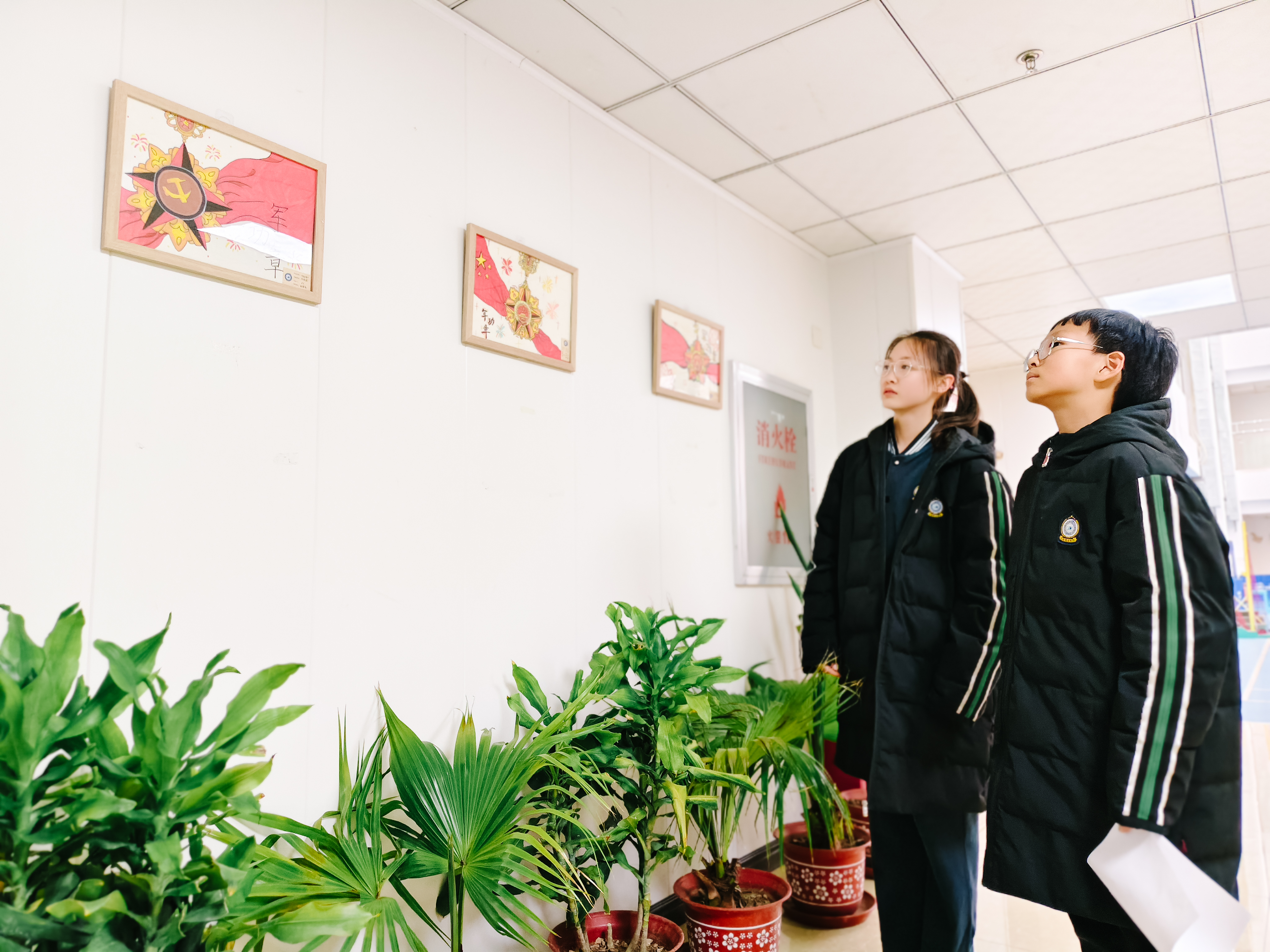 本次展览以“红色印记・铭史承志”为主题,精心划分【红色・印记】【抗战・纪念】【希望・曙光】【展望・未来】四大板块,共展出200余幅学生书法、绘画、手工作品。