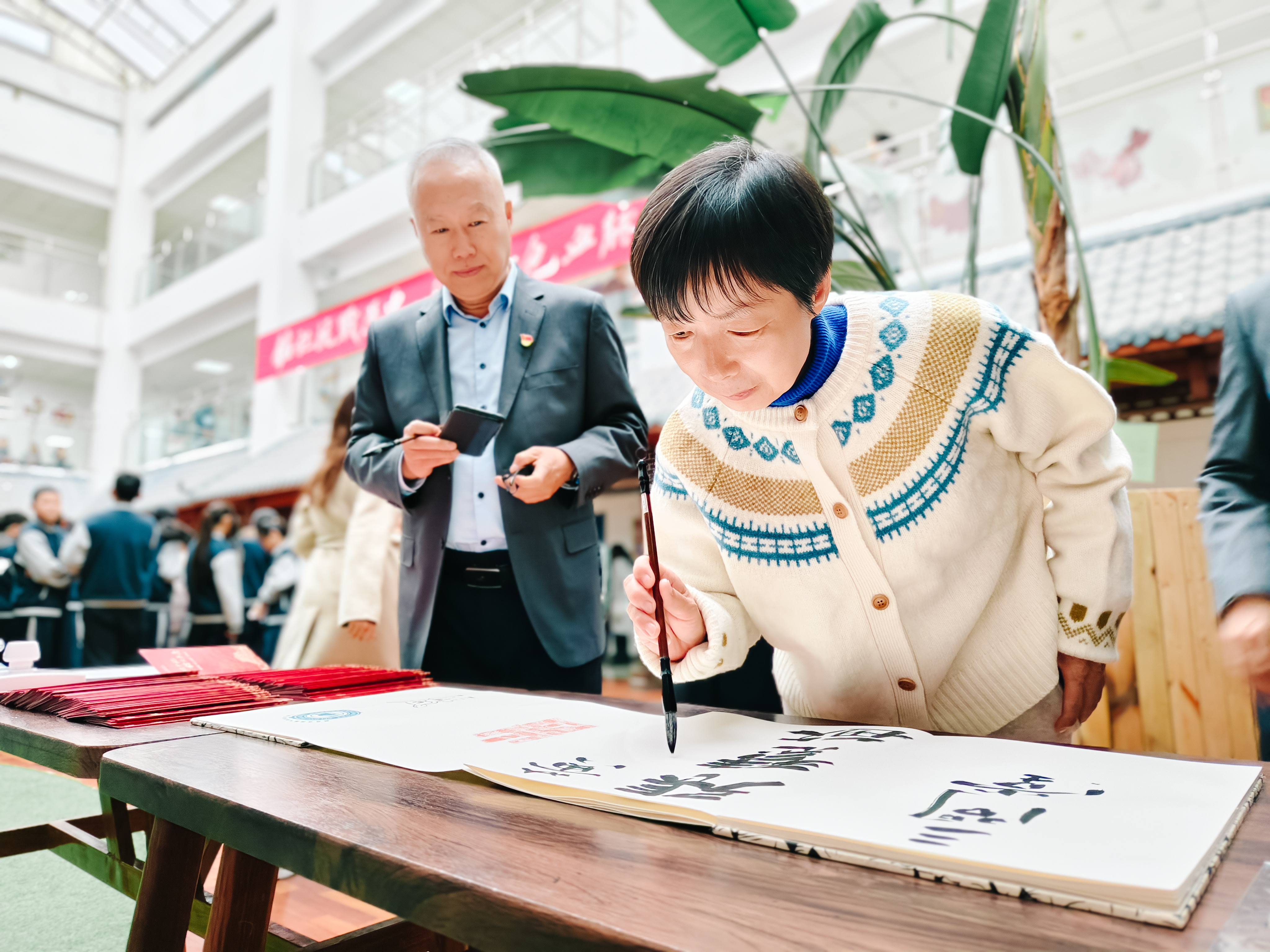 伴随着灵动优美的艺术舞姿和独具抗战主题风格的竹笛声,书画展正式开幕。