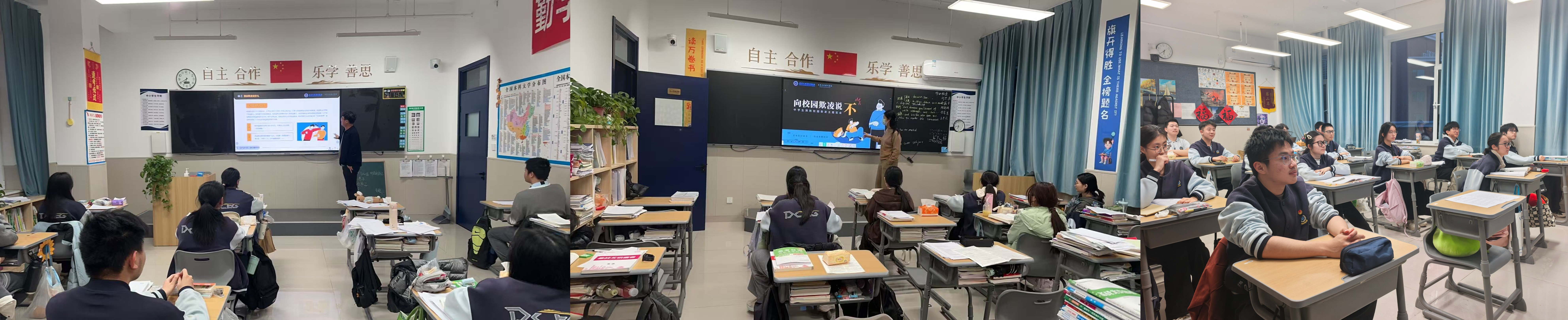 班会伊始,各班班主任结合真实案例、短视频和情景素材,用贴近学生生活的方式,清晰解读校园欺凌的定义、表现形式与严重危害。从肢体冲突、言语辱骂,到孤立排挤、网络造谣,班主任细致剖析各类欺凌行为对受害者、施暴者乃至旁观者造成的身心伤害,让同学们深刻明白:校园欺凌触碰道德底线、违反校纪校规,甚至触犯法律底线,绝不能漠视、不能参与、不能纵容。